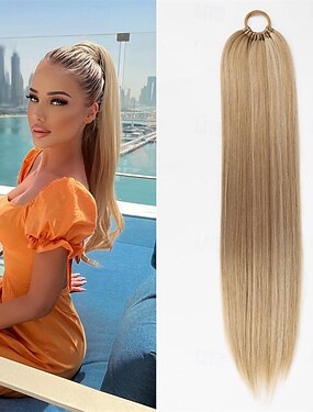 Extension per capelli a coda di cavallo da donna, lunga coda di cavallo intrecciata con elastico, extension sintetica liscia a coda di cavallo intrecciata da 22 pollici (riflessi biondo dorato)