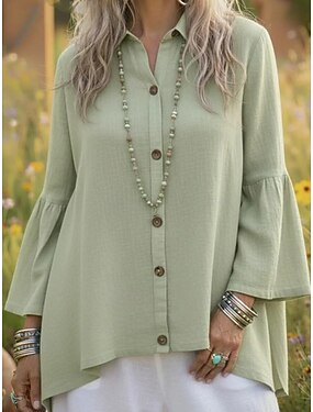 Per donna Blusa Bottoni Tinta unica Elegante Casual Manica 3/4 Scollo a V Top Regolari Quotidiano Bianco Verde chiaro Blu marino Marrone Albicocca Estate Primavera Autunno