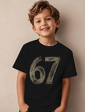 Cotone Bambini Ragazzi Nero Grafico Gergo divertente 67 Maglietta Blusa Girocollo Manica Corta All'aperto Abbigliamento Quotidiano Moda Streetwear Designer Stampa Estate Primavera