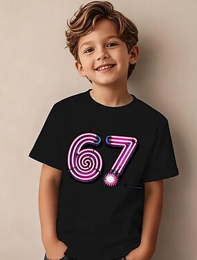 Cotone Bambini Ragazzi Nero Grafico Gergo divertente 67 Maglietta Blusa Girocollo Manica Corta All'aperto Abbigliamento Quotidiano Moda Streetwear Designer Stampa Estate Primavera
