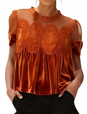 Per donna Velluto Blusa Rete Tinta unica Elegante Manica Corta Girocollo Top Regolari Quotidiano Ferie Uscire Blu Nero Vino Verde militare Arancione Estate Primavera
