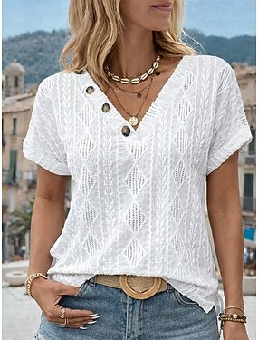 Per donna Blusa Bottoni Tinta unica Quotidiano Elegante Casual Manica Corta Scollo a V Top Regolari Quotidiano Nero Bianco Rosa Azzurro cielo Albicocca Estate Primavera