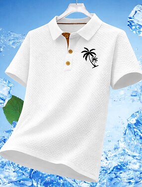 Per uomo Magliette Polo a Nido d'Ape Polo in seersucker di seta ghiaccio Casuale Lavoro Bavero Manica Corta Essenziale Moderno Albero di Cocco Bottoni Raffreddamento Estate Primavera Blu Nero Bianco