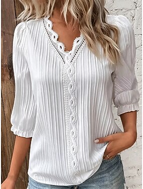 Per donna Camicia Blusa Top in pizzo Traforato Semplice Elegante Classico Moderno Manica 3/4 Scollo a V Top Regolari Quotidiano Ferie Uscire Nero Bianco Giallo Rosso Verde Estate Primavera