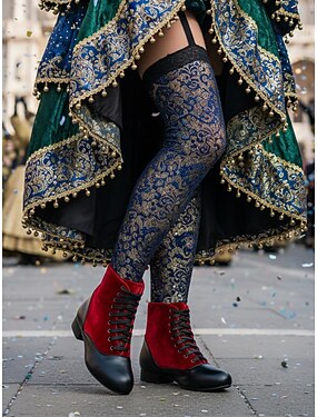 stivali da carnevale in velluto rosso e nero da donna - stivaletti vintage vittoriani con lacci per il ballo in maschera di Venezia - eleganti scarpe da festival per sfilate di strada
