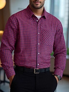 Per uomo Camicia Camicia elegante Camicia con Bottoni Plaid Matrimonio Quotidiano Rosso Blu Manica Lunga Collo ripiegato Primavera Autunno Abbigliamento Tasca Frontale