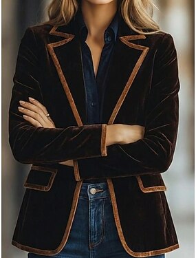Per donna Blazer Blazer di velluto Confortevole Tasca Bottoni Moda Semplice Formale All'aperto Regolare Collo ripiegato Vestibilità regolare Manica Lunga Capispalla Nero Bianco Vino Autunno Inverno