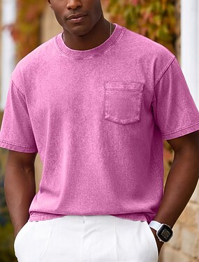 Per uomo Maglietta Maglia Henley Camicia 100% cotone lavaggio acido Manica Corta Girocollo Autunno & Inverno Estate Primavera Semplice Vintage Streetwear Retrò Tasca Tinto in capo Casuale Casa