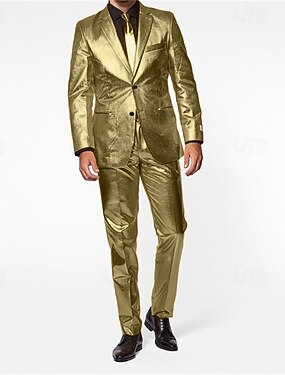 Per uomo Blazer Set Performance Palcoscenico Ricevimento di matrimonio Vintage Moda Primavera Autunno Poliestere Tinta unica Tasca Glitter Confortevole Monopetto Giacca Argento Oro