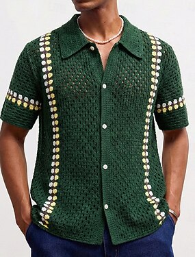 Per uomo Polo Polo a maglia intrecciata Casuale Streetwear Bavero Manica Corta Essenziale Moderno Blocco di colori Leggero Bottoni Estate Primavera Vestibilità regolare Verde Polo