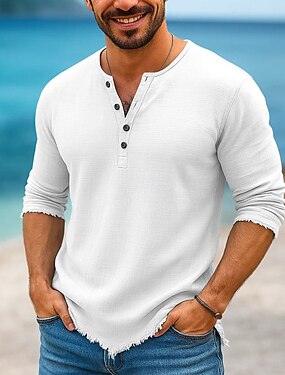 Per uomo Camicia in cotone e lino Maglia Henley Maglietta Manica Lunga Henley Estate Tutte le stagioni Tinta unica Semplice Moda Designer Casual Blocco di colore Bottoni All'aperto Casuale Quotidiano