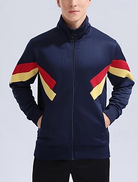Per uomo Patchwork Calcio estivo Partita globale Giaccia da corsa Giacca da esterno Giacca sportiva Primavera Autunno Tasche Cerniera Blocco di colore Manica Lunga Antivento Asciugatura Rapida