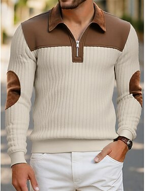 Per uomo Maglia Felpa con zip corta Aalbicocca Nero Bianco Verde militare Blu marino Mezza zip Blocco di colori Patchwork Sport & Outdoor Quotidiano Ferie Poliestere Velluto a coste Streetwear
