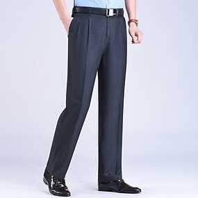 Per uomo pantaloni della tuta Pantaloni Pantaloni da completo Tasche Gamba dritta Liscio Matrimonio Ufficio Attività commerciale Moderno Da cerimonia Nero Blu marino Vita alta Media elasticità