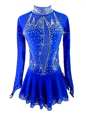 Abito da pattinaggio artistico Per donna Ragazze Pattinaggio sul ghiaccio Vestito Blu Reale Patchwork Foro per il pollice Rete Spandex Elasticizzato Allenamento Professionale Competizione Vestiti da