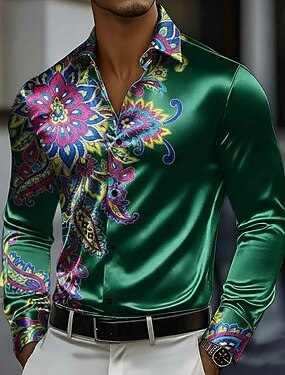 Per uomo Paisley Stampa Floreale Fiori Camicia Camicia in raso Camicia elegante Manica Lunga Vintage Retrò Vacanza Abbigliamento Quotidiano Estate Primavera Autunno Collo ripiegato Stampa 3D Camicie