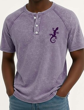 Per uomo Delfino Lavato Maglietta Top Henley Camicia lavata Manica Corta Vintage Designer Casual Casuale Quotidiano All'aperto Estate Primavera Tutte le stagioni Blu chiaro Viola Grigio Henley