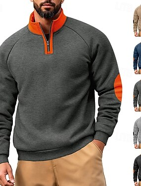 Per uomo Blocco di colori A righe Felpa Moda Quotidiano Classico Casual Collo alla coreana Zip a un quarto Casa All'aperto Ufficio Lavoro Blu Viola chiaro Marrone Verde Grigio Con zip Autunno Inverno