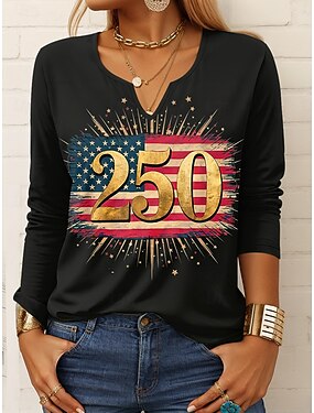 Giorno dell'Indipendenza Anniversario Americano Patriottico T-Shirt da Donna Grafica Bandiera Vintage Elegante Moderna Maniche Lunghe Collo a Intaglio Quotidiani Weekend Stampa Blu Nero Kaki