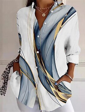 Per donna Camicia Bottoni Stampato Astratto Attivo Quotidiano Elegante Manica Lunga Colletto a Camicia Top Regolari Quotidiano Ferie Blu Primavera Autunno