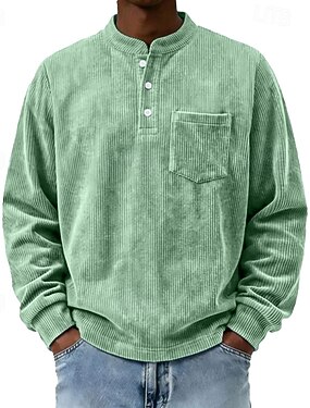 Per uomo Maglietta Camicia di Velluto a Coste Maglia Henley Manica Lunga Henley Primavera Autunno Tinta unica Vintage Streetwear Elegante Tasca Manica corta Quotidiano All'aperto Vacanza Nero Blu