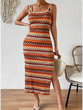 Per donna Abito Midi Abito Boho Vestito Estivo Abito Vintage Vestito Casual Elegante Moda Moderno All'aperto Spiaggia Vacanza Vestibilità regolare A righe Senza Maniche Collo a U Blu Rosso Viola