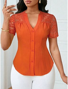 Per donna Blusa Pizzo Patchwork Tinta unica Quotidiano Elegante Casual Manica 3/4 Scollo a V Top Regolari Quotidiano Blu Nero Bianco Rosa Verde Estate Primavera Autunno