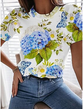 Per donna Maglietta Stampato Floreale Grafico Vintage Elegante Classico Manica Corta Girocollo Top Regolari Quotidiano Blu Rosa Estate Primavera