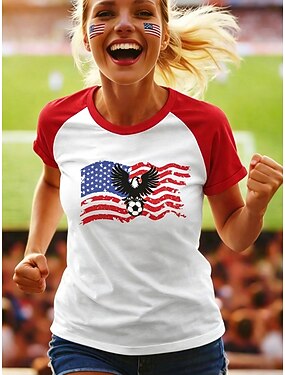 Giorno dell'Indipendenza Anniversary Americano Maglietta Patriottica da Donna Stampa Grafica Bandiera Nazionale Vintage Elegante Classica Manica Corta Collo Tondo Regolare Top Giornalieri Weekend Blu