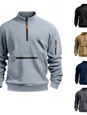 Per uomo Felpa con cappuccio Felpa con cappuccio e zip corta Felpa con cappuccio tattica Nero Verde militare Blu marino Cammello Con Cappuccio Semplice Tasca Zip a un quarto Sport & Outdoor Casuale