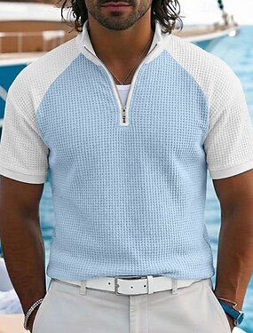 Per uomo Magliette Polo a Nido d'Ape Casuale Ferie Colletto Mao Manica Corta Essenziale Moderno Plaid Blocco di colori Blocco di colore Bottoni Estate Primavera Vestibilità su misura Nero Blu marino
