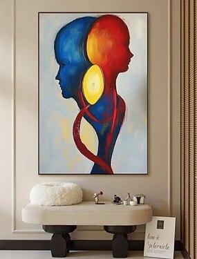 dipinto a mano originale coppia di amanti dipinto a olio su tela grande dipinto a olio arte murale dipinto astratto dipinto blu rosso dipinto personalizzato decorazione da parete per soggiorno