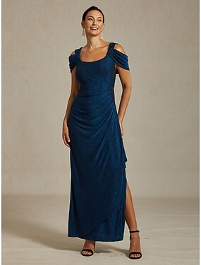 Per donna Abito maxi Abito a spalle scoperte Elegante Festa Feste Ospite di nozze Cocktail party Arricciato Volant Glitter Vestibilità regolare Tinta unica Senza Maniche Spallina Blu reale