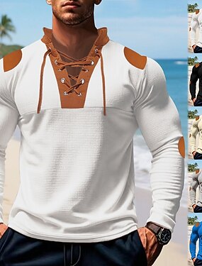 Per uomo Maglietta Maglietta a Maglia Waffle Camicia a Maniche Lunghe Manica Lunga Scollo a V Primavera Autunno Blocco di colori Moda Designer Essenziale Allacciato Vacanza Streetwear Uscire
