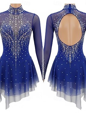 Vestito da pattinaggio artistico Per donna Da ragazza Pattinaggio sul ghiaccio Vestiti Blu Reale Foro per pollice tintura sfumata Elevata elasticità Professionale Competizione Vestiti da pattinaggio