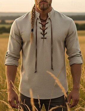 Medievale Rinascimento Camicia Tunica Normale Costume Per uomo Vichingo Halloween Performance Fiera Rinascimentale Adulti Top Estate Primavera Autunno