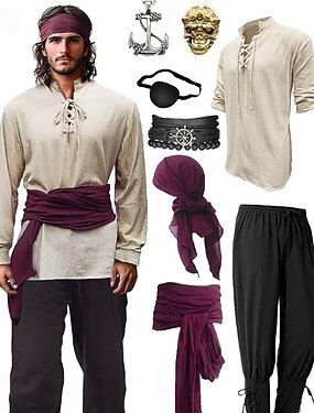 Medievale Rinascimento 17° secolo Armatura Abiti Camicia Pirata Cavaliere Vichingo Ranger Elfico Costume Per uomo Vichingo Fantasia Halloween Carnevale Performance LARP Fiera Rinascimentale Adulti