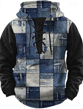 Per uomo Jeans Felpe con cappuccio Felpa Moda Cool Quotidiano Manica Lunga Girocollo Ferie Uscire Abbigliamento casual alla moda Blu scuro Coulisse Autunno Inverno progettista S M L XL XXL XXXL