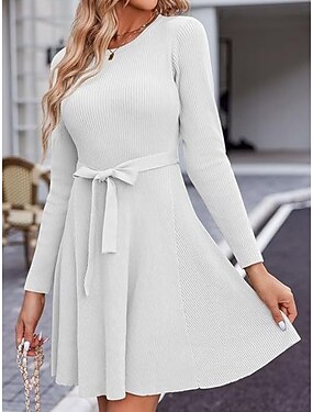 Per donna Mini Abito Abito Bianco Vestito di sudore Elegante Moda Moderno All'aperto Vacanza Uscire Taglia piccola Semplice Manica Lunga Girocollo Bianco Borgogna Blu marino Verde scuro Primavera