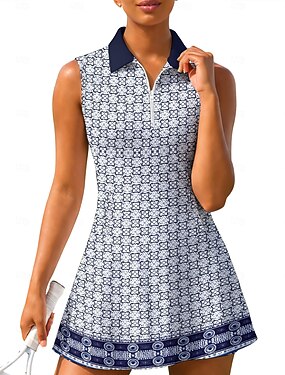 Per donna Geometrico Motivo Floreale Abito da tennis Abito sportivo Senza Maniche Floreale Traspirante Tennis Golf Badminton Colletto Polo Collo con zip Vestito Nero Rosso Blu marino scuro