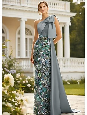 Tubino Colonna Strascico a Terra Lunghezza al pavimento Abito Formale Abito da sera Abito da cerimonia per signora Senza Maniche Monospalla Elegante Nascondi Pancia Formale Ospite di nozze Jacquard