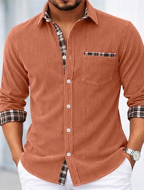 Per uomo Camicia Camicia elegante Camicia di Velluto a Coste Camicia con Bottoni Plaid Casuale Quotidiano Nero Blu marino Arancione Verde Manica Lunga Collo ripiegato Tutte le stagioni Abbigliamento