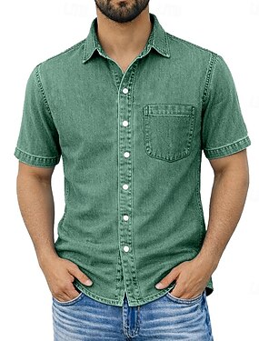 Per uomo Camicia Demin Camicia 100% cotone lavaggio acido Top Henley Manica Corta Vintage Angosciato Casuale Casa Streetwear Autunno & Inverno Estate Primavera Nero Rosa Verde Chiaro Grigio Blu chiaro