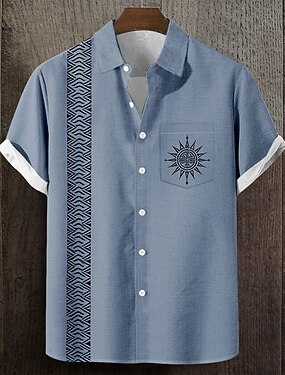 Per uomo Geometrico Etnico Totem del sole Camicia Camicia con Bottoni Manica Corta Vintage Retrò Quotidiano All'aperto Vacanza Estate Primavera Collo ripiegato Stampa 3D Camicia tipo lino Blu Verde