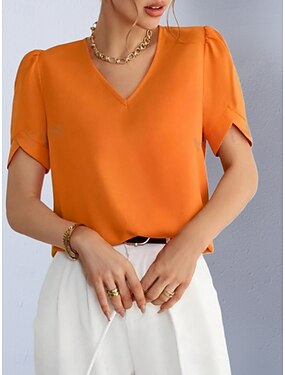 Per donna Blusa Finto cotone e lino Bottoni Tinta unica Elegante Casual Manica Corta Colletto a Camicia Top Regolari Quotidiano Blu Bianco Blu marino Verde Estate Primavera