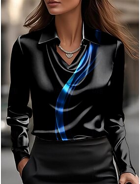 Camicia da donna con stampa geometrica, abbottonatura e revers, manica lunga, casual, ampia, con tasche, per tutti i giorni e per le feste, vari colori