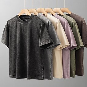 Per uomo Maglia Henley Camicia 100% cotone lavaggio acido Manica Corta Henley Estate Primavera Autunno Semplice Retrò Vintage Casual Stile Vintage Lavato Casuale Blu chiaro Marrone scuro Nero