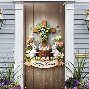 Copriporta a forma di croce pasquale, cestino di uova con coniglietto e auguri di "buona Pasqua", affascinante decorazione primaverile per le feste, perfetta per la porta di Pasqua e per l'arredamento