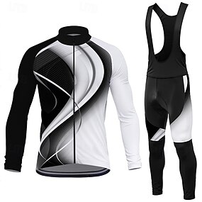 Per uomo Maglia da ciclismo con salopette Manica Lunga Mountain Bike MTB Ciclismo su strada Primavera Autunno Bianco Blu Verde Geometrico Sfumatura Bicicletta Traspirante Confortevole Spandex Gli