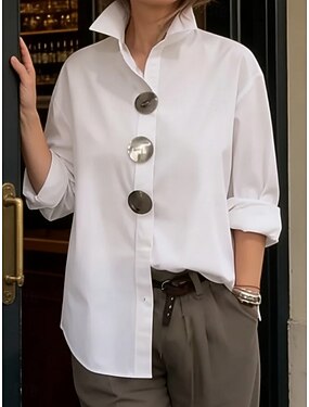 Per donna Blusa Bottoni Tinta unica Elegante Casual Manica Lunga Bavero Top Regolari Quotidiano Blu Nero Bianco Rosa Vino Primavera Autunno